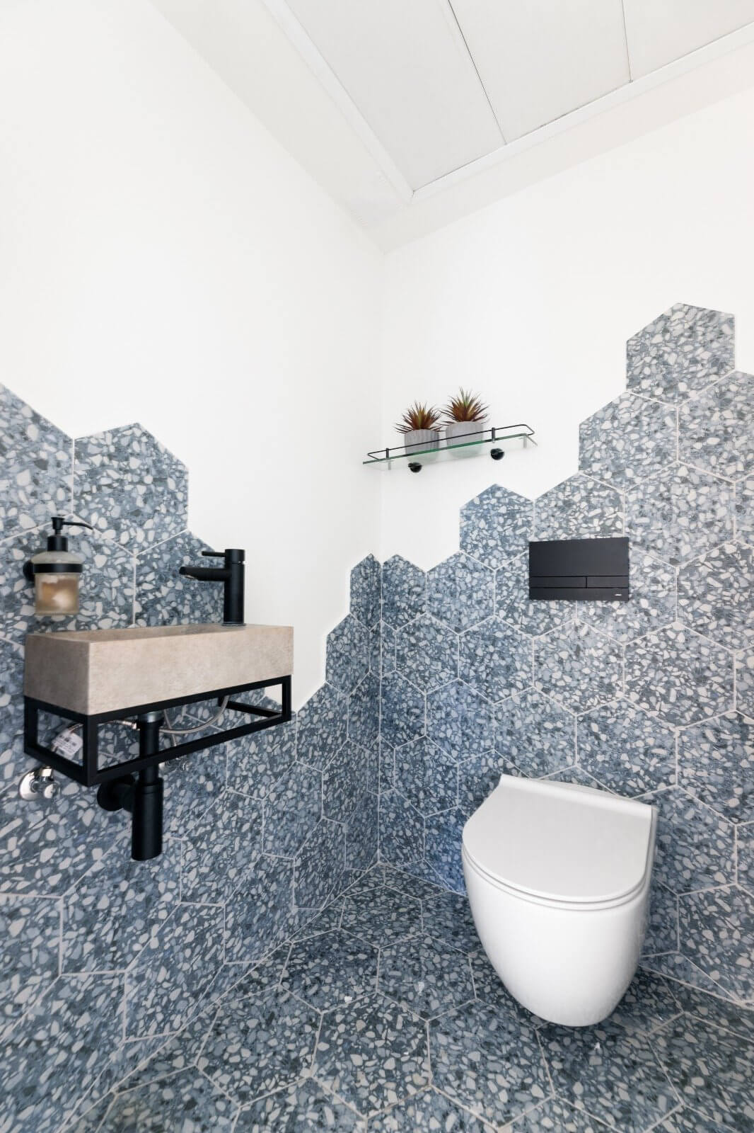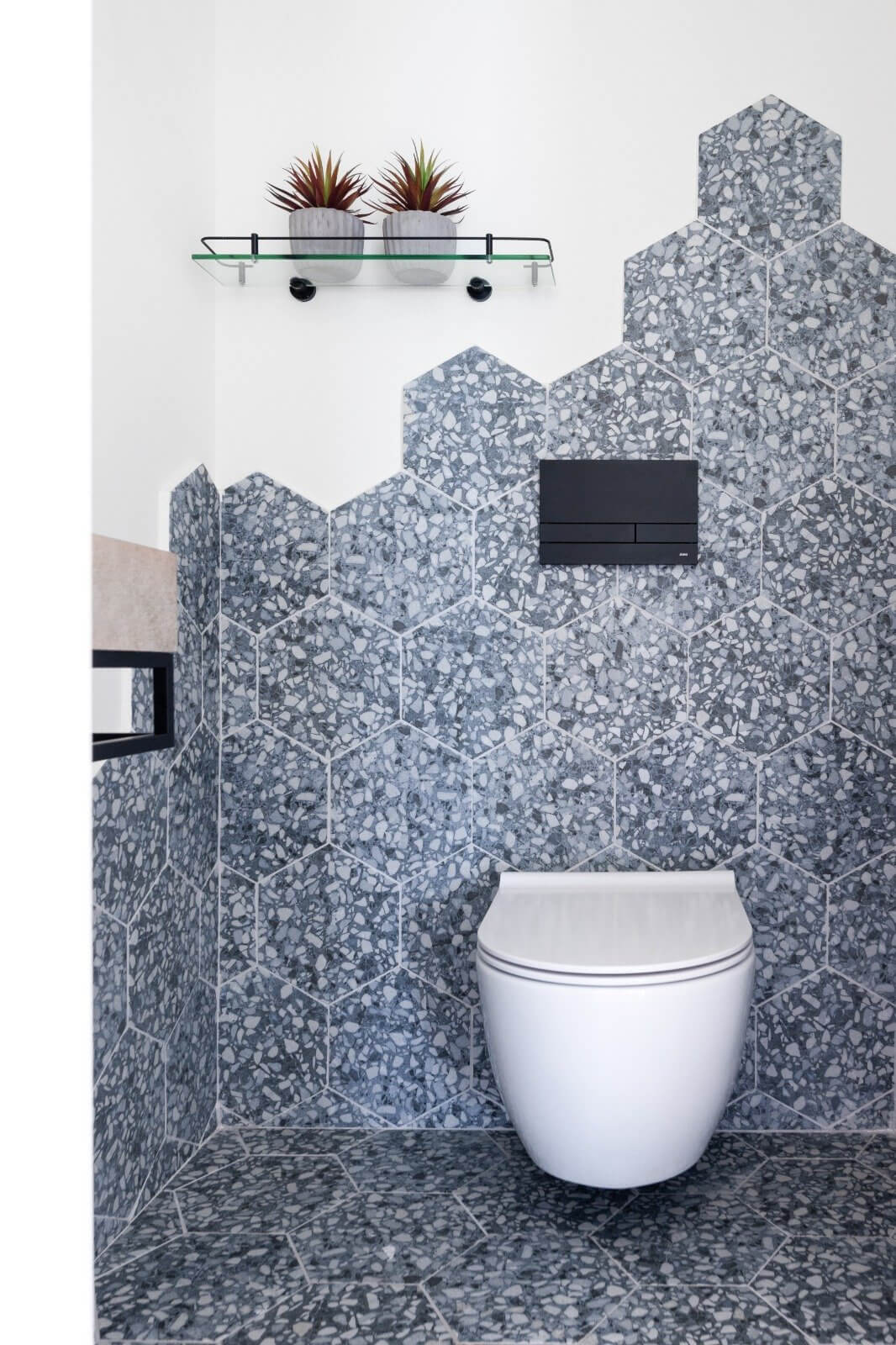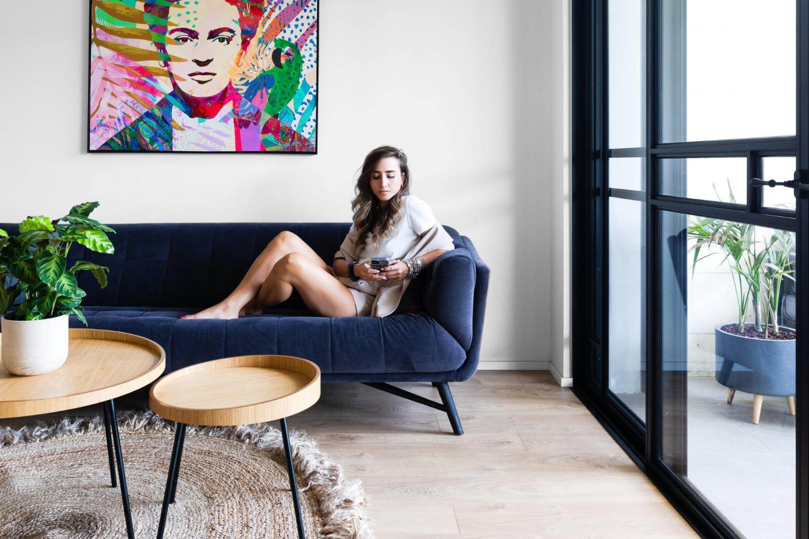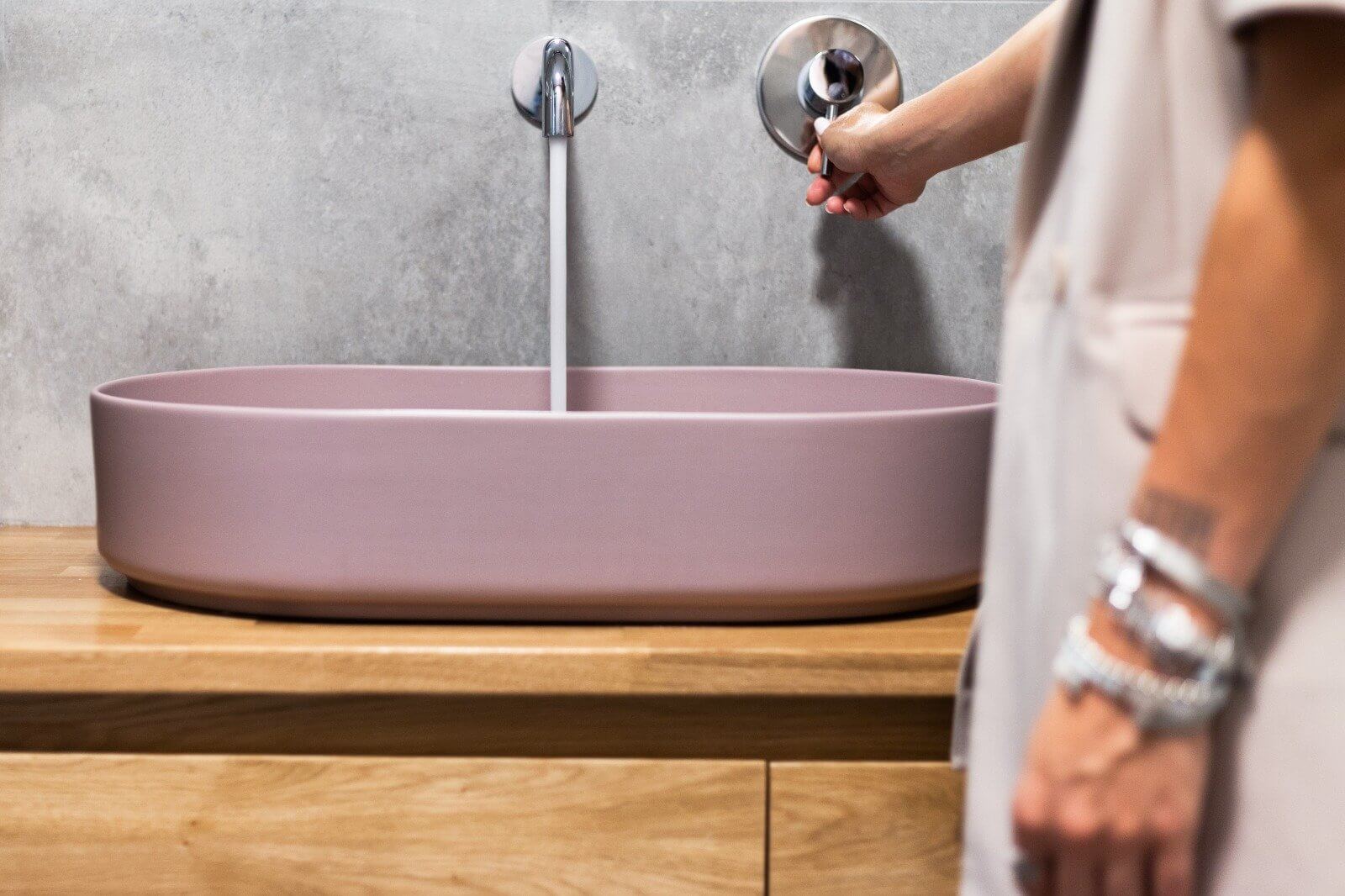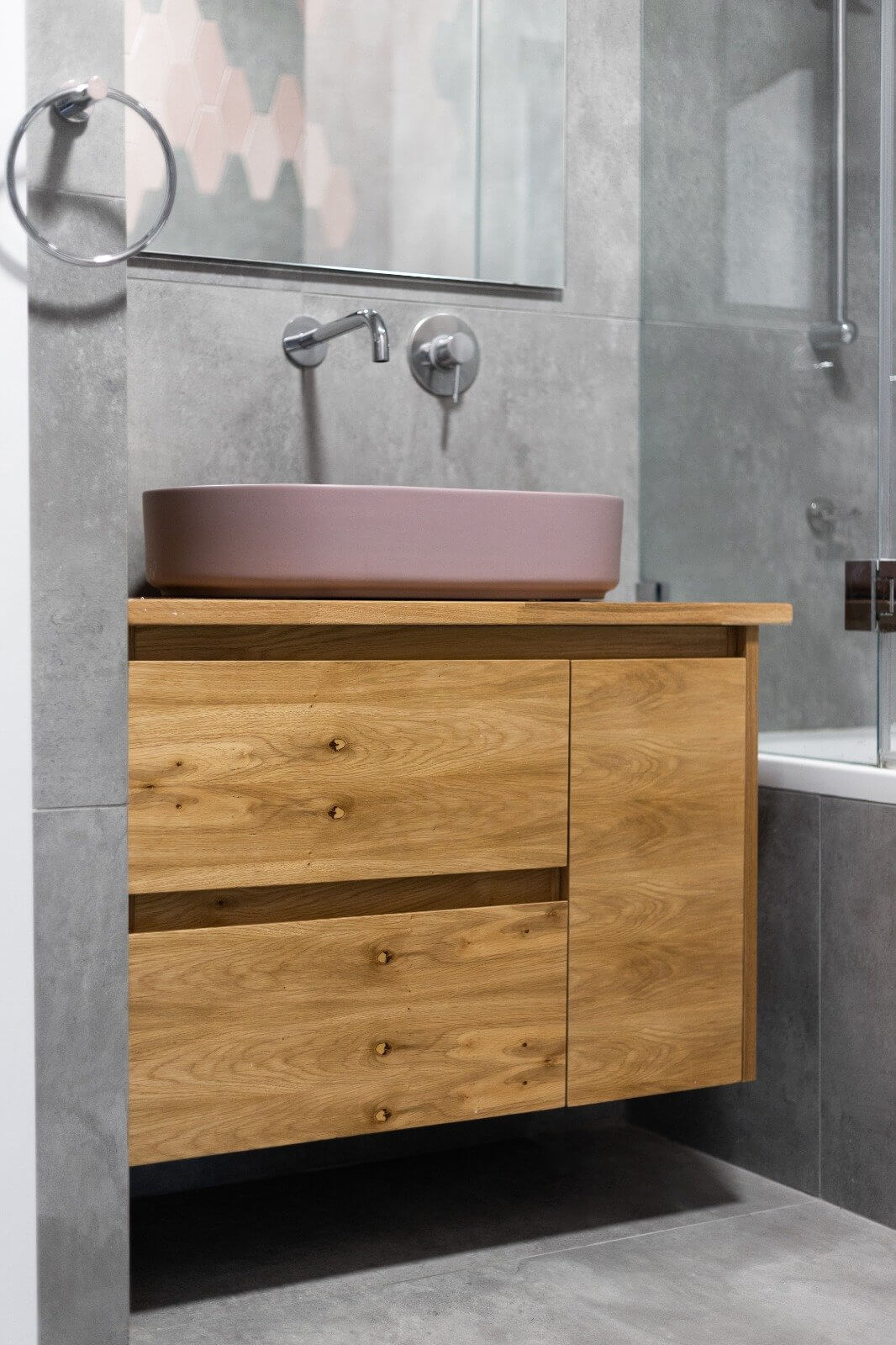 מעצבת הפנים דקל שחף עיצבה דירה מודרנית בעלת שילוב אלמנטים מיוחדים ושילוב גוונים של לבן, אפור ושחור עם נגיעות של גווני ורוד באלמנטים של קרמיקה ייחודית בחדר האמבטיה.